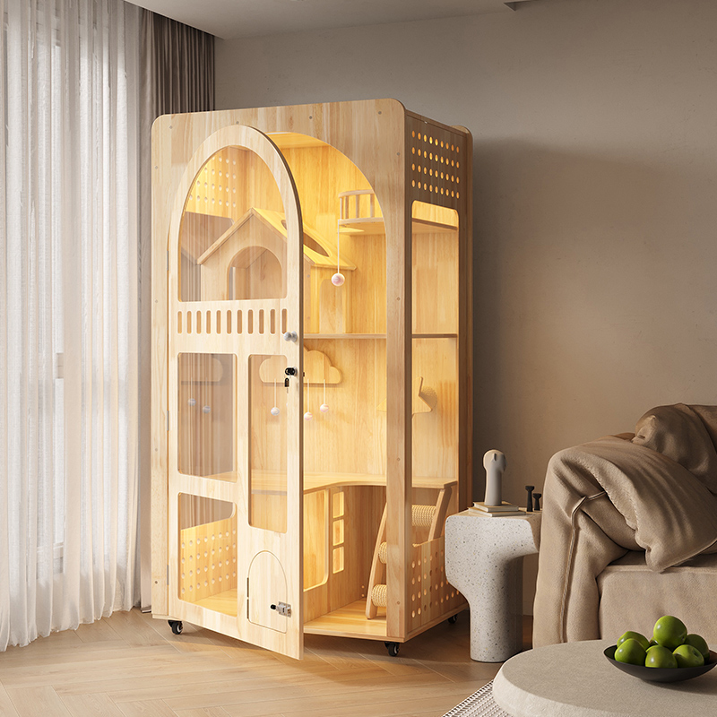 - Interior kit: adjustable shelves, bridge, hideout, scratch column, toy hangers (mix & match)
